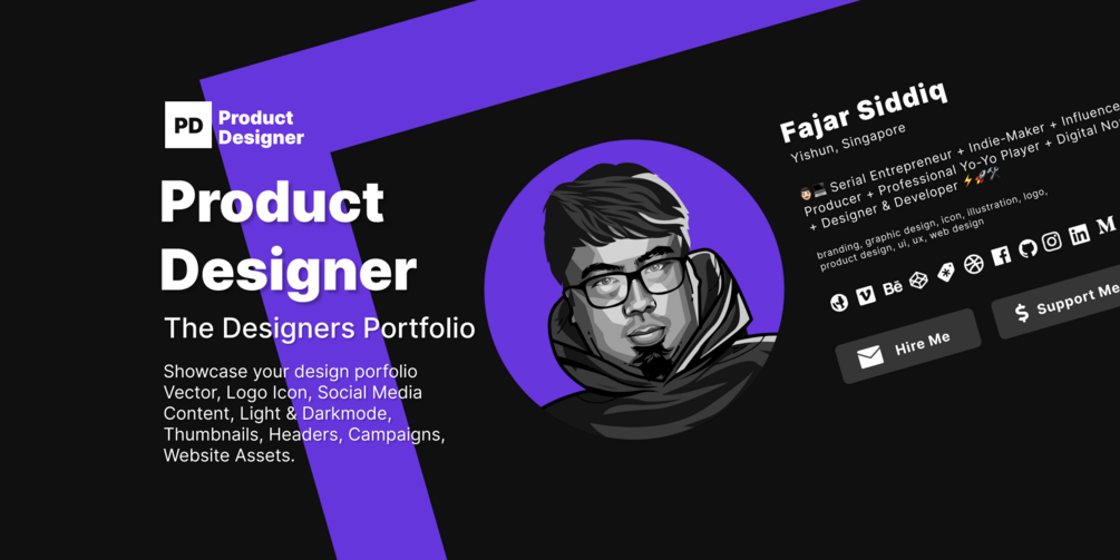 Product Designer landing page in dark mode.